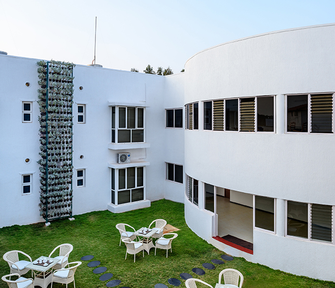 A garden café with a quiet ambience serving hot & cold coffee and tea with crisp and crunchy snacks.