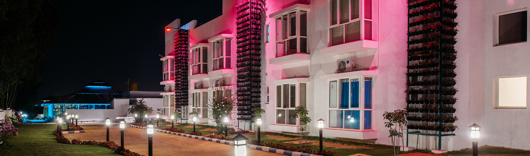 Fiestaa Resort n Events venue is professionally managed by GEMS Hotel Management Institute, which marks the beginning of GEMS B School’s venture in the Hospitality Sector. GEMS B School is one of the country’s leading Business Schools, headquartered in The Bangalore Palace, Bengaluru.
